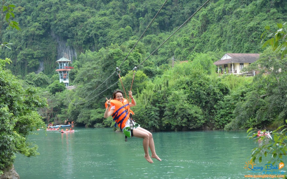 - + Zipline đu dây 400m vào cửa hang Tối (người lớn từ 1.3m trở lên và cân nặng từ 40kg → 90kg mới được tham gia).