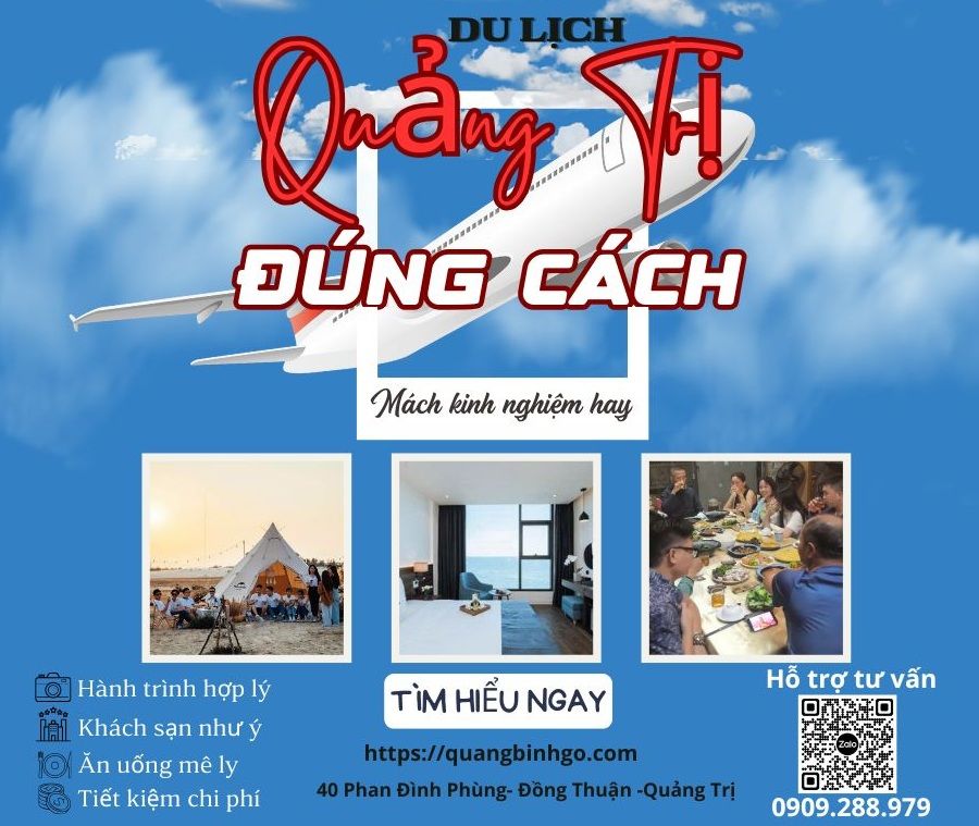 Một trong những đơn vị lữ hành uy tín lâu năm tại Quảng Trị là Quang Bình Go Travel- Công ty TNHH lữ hành Hương Việt. Bạn liên hệ qua số hotline: 0909.288.979 – 0944.499.588 để được hỗ trợ tư vấn và đặt tour một cách dể dàng và nhanh chống. Hãy yên tâm giao cho chúng tôi. Khi bạn chọn Quangbinhgo – Bạn đã chọn đúng người phục vụ!. Nơi đặt niềm tin cho chuyến hành trình lý tưởng. Các chuyên gia thổ địa du lịch địa phương sẽ thiết kế chương trình tour du lịch hợp lý với độ tuổi; sức khỏe và sở thích của bạn. Chương trình chỉnh chu, chất lượng chi tiết từ A đến Z .