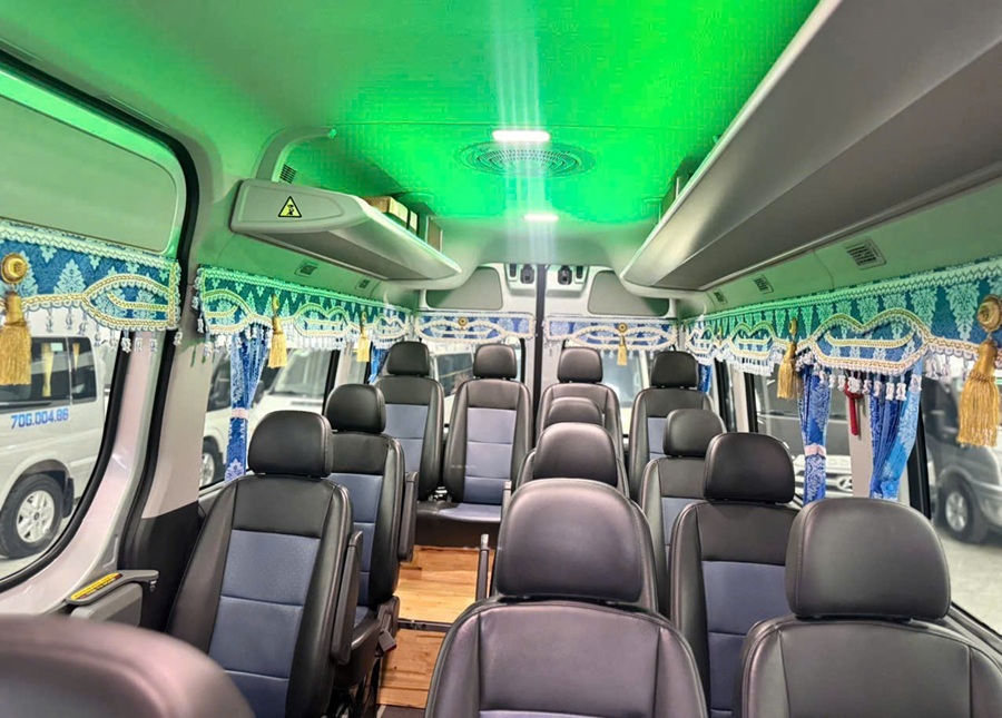Xe đời mới 2021–2025: với các dòng xe Ford Transit, Hyundai Solati, Iveco, Mercedes-Benz. Nội thất xe tiện nghi: máy lạnh, ghế ngả, wifi, loa âm thanh, cửa lùa tự động. Xe luôn được vệ sinh, bảo dưỡng định kỳ, đảm bảo sạch sẽ và an toàn tuyệt đối.