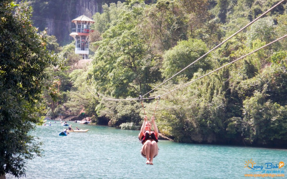 - + Zipline đu dây 400m vào cửa hang Tối (người lớn từ 1.3m trở lên và cân nặng từ 40kg → 90kg mới được tham gia).