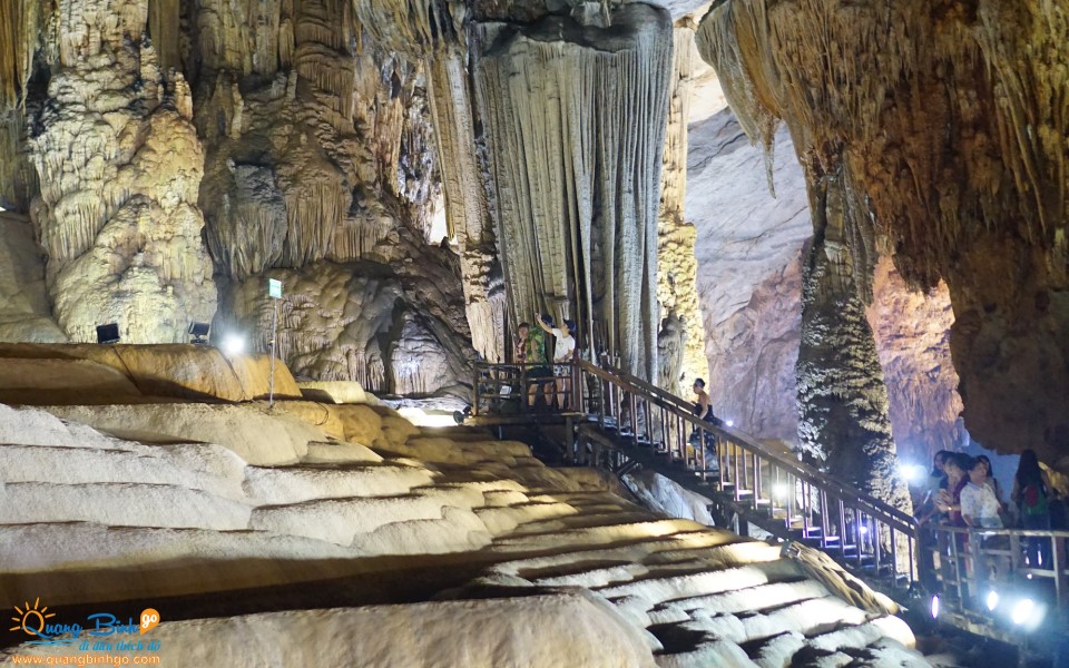 Trên nhịp cầu thang gỗ nhỏ xinh dài 1km, Du khách thông thả trong không khí mát rượi từ 16 -18 độ C, chiêm ngưỡng các khối thạch nhũ đẹp mê hồn, muôn ngàn hình dáng khác nhau: Thạch Thiên Cung, Thác Thiên Hà, Quần Tiên hội tụ, Tháp Liên hoa, thỏ Ngọc, thánh đường…